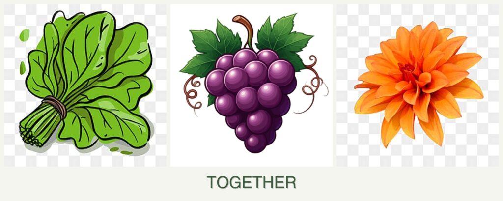Nutrient Needs and Spacing: Grapes have deep root systems and require significant nutrients, potentially outcompeting spinach and dahlias for resources. Spinach, being a shallow-rooted plant, may struggle to access nutrients if planted too closely with grapes.
