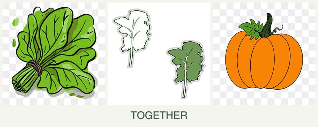 Planting spinach, kale, and pumpkin together can offer several benefits: