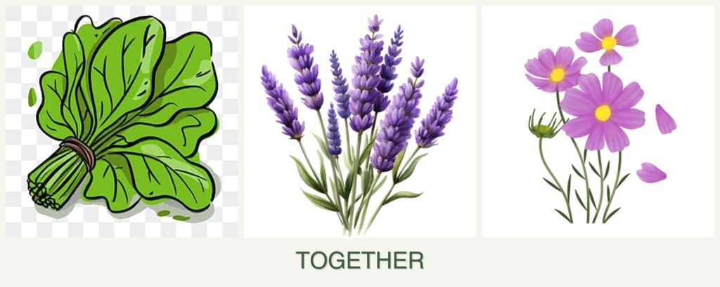 Planting spinach, lavender, and cosmos together can offer several benefits: