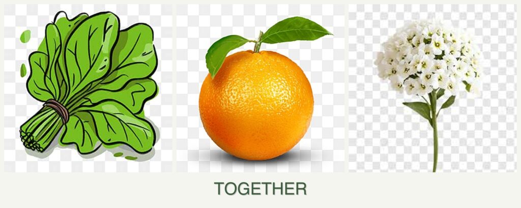 - Nutrient Needs and Spacing: Spinach and alyssum have similar nutrient needs, but oranges, as trees, require more space and nutrients. Proper spacing is crucial to prevent competition.