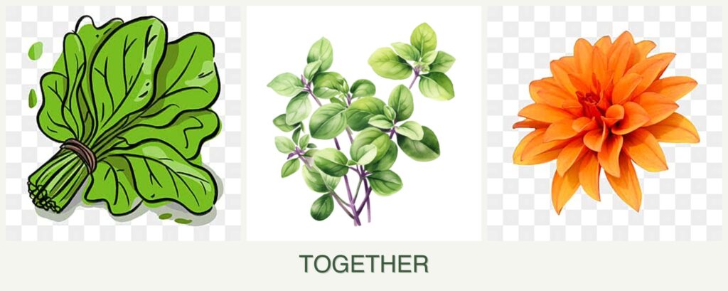 - Improved Flavor or Growth: Oregano may enhance the flavor of nearby spinach, while dahlias add aesthetic value to the garden.