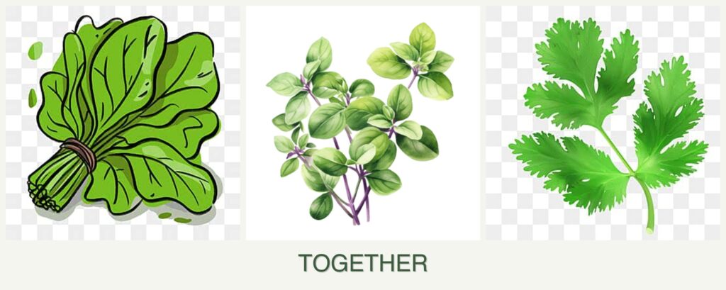 - Pest Repellent Properties: Oregano’s strong aroma can deter pests like aphids and spider mites, protecting spinach and parsley.