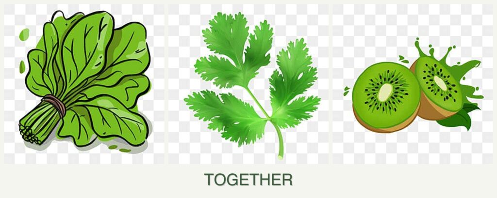 Pest Control: Spinach and parsley can help deter pests when planted together, but kiwi’s needs are different, focusing more on fungal disease prevention.