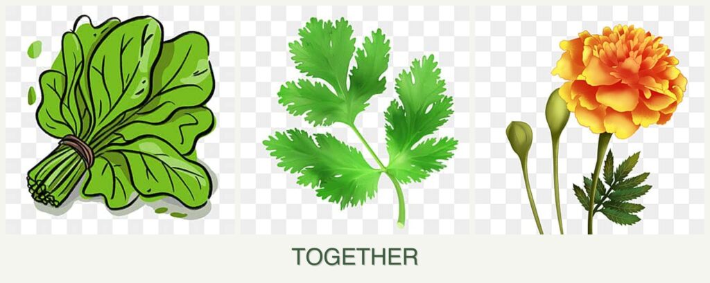 Planting spinach, parsley, and marigolds together offers several benefits: