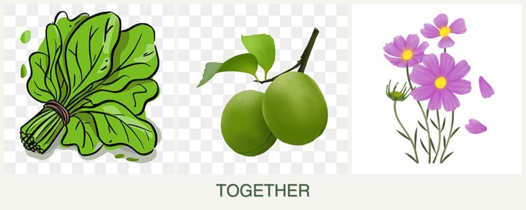 Can you plant spinach, plums, and cosmos together? The short answer is no. While these plants can be grown in proximity, they do not form a classic companion planting trio due to differing needs and habits.