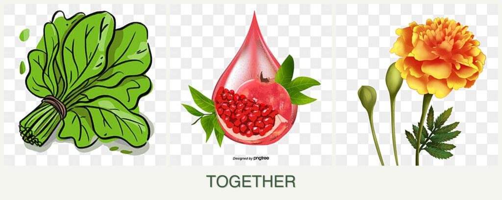 - Pest Control: Marigolds can deter pests that might otherwise affect spinach and pomegranates.