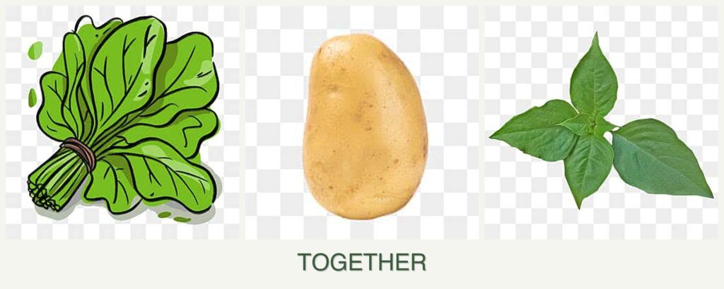 - Nutrient Needs: All three plants have different nutrient requirements. Spinach and basil are light feeders, while potatoes need more nutrients, especially phosphorus and potassium.