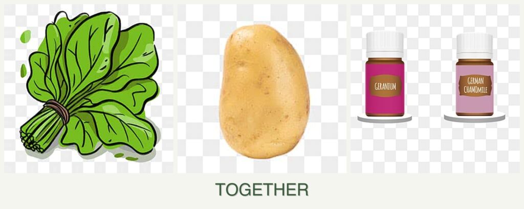 - Potatoes require full sun and consistent moisture but can be susceptible to pests that might not be deterred by spinach or geraniums.