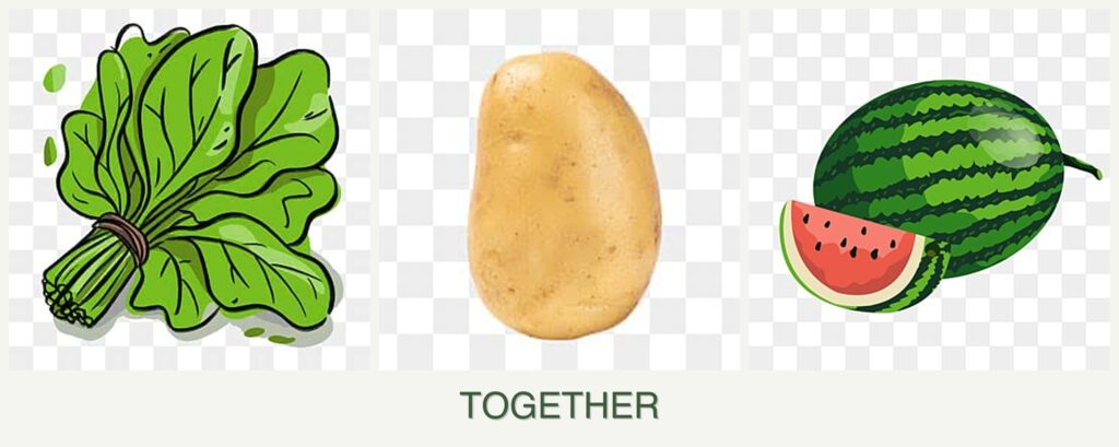 - Growth Requirements: Spinach prefers cooler temperatures, while potatoes and melons thrive in warm conditions.