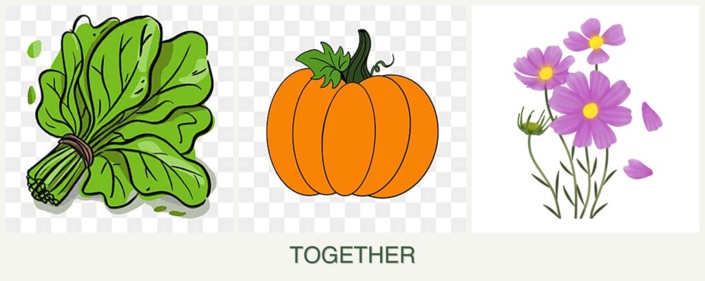 Can you plant spinach, pumpkin and cosmos together?