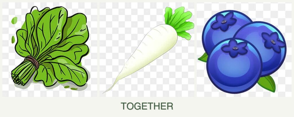 - Pest Control: Spinach and radishes can benefit from each other’s pest-repelling properties, but blueberries don’t offer similar advantages.