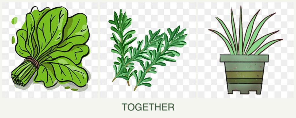 - Pest Control: Rosemary is known for its pest-repellent properties, but it doesn’t directly benefit spinach or lemongrass in this regard.