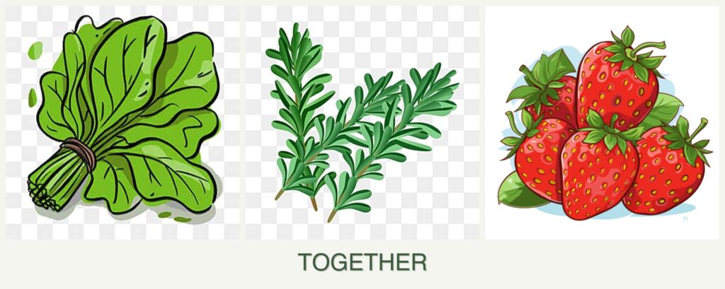 - Pest Repellent Properties: Rosemary’s aromatic oils can deter pests that might otherwise target spinach and strawberries.