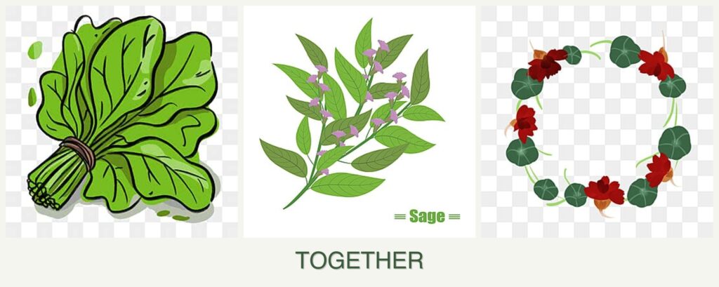 Planting spinach, sage, and nasturtiums together offers several advantages: