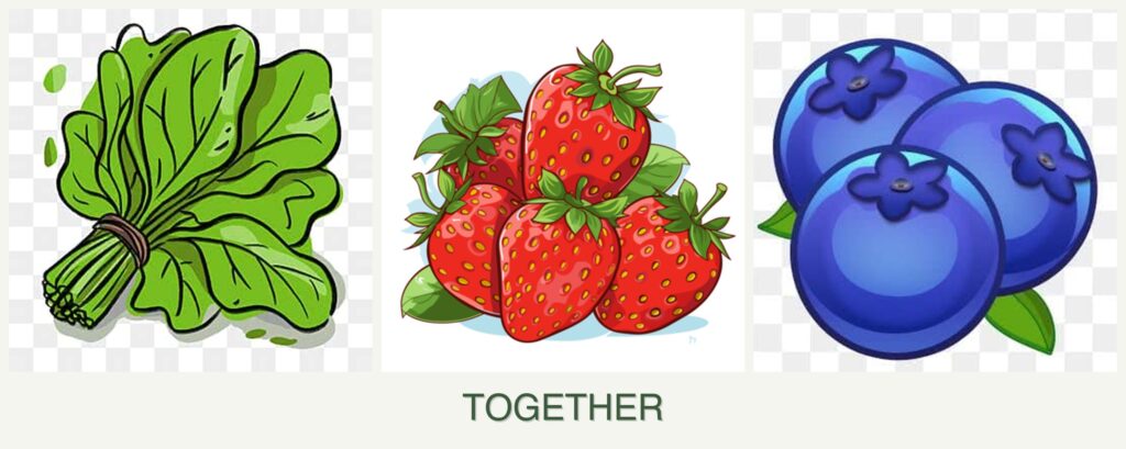 - Space Efficiency: Spinach’s short growth cycle allows it to be harvested before strawberries and blueberries reach full size.