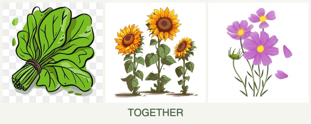 - Pest Control: Sunflowers can attract beneficial insects, while cosmos can deter some pests, making them good companions for spinach.