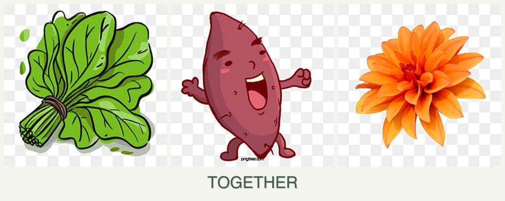 - Pest Control: Spinach can help deter some pests that affect sweet potatoes, while dahlias attract pollinators.