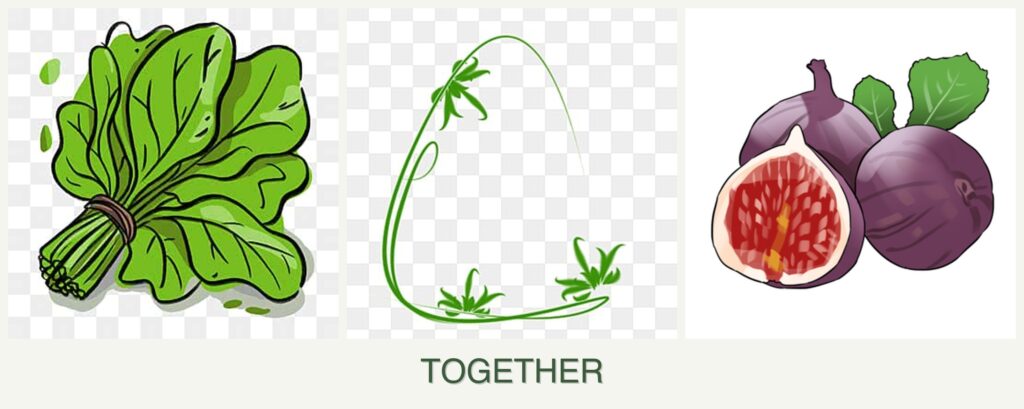 - Spinach prefers cooler temperatures and can tolerate partial shade. It has shallow roots, making it a good companion for deeper-rooted plants like figs.