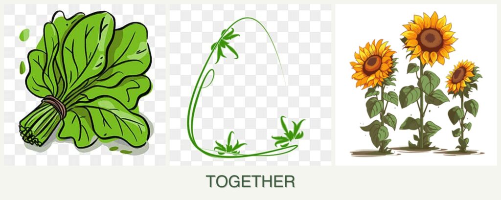 - Improved Growth: Sunflowers can provide partial shade for spinach, helping to extend its growing season by keeping it cool.