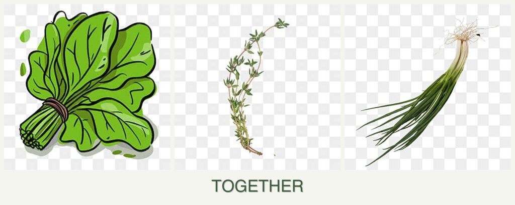 - Pest Repellent Properties: Thyme and chives help keep pests at bay, protecting spinach from common garden invaders.