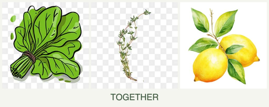 - Pest Control: Thyme can act as a natural pest repellent, which benefits spinach and lemons by reducing pest pressure.