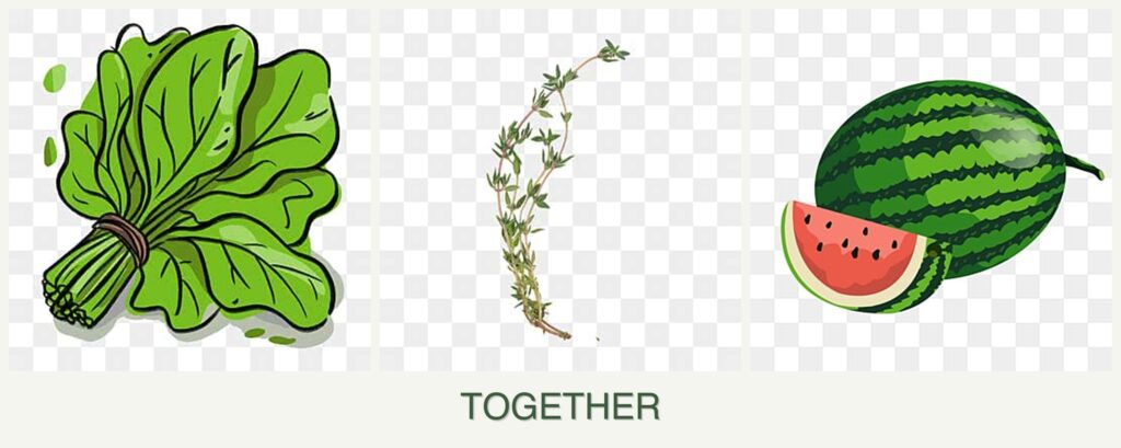 - Pest Repellent Properties: Thyme’s strong scent can deter pests that might target spinach and melons.