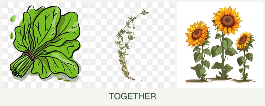 Can you plant spinach, thyme and sunflowers together?