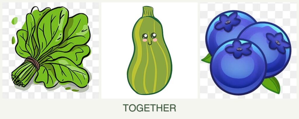- Spacing: Zucchini’s sprawling habit can overshadow spinach, and blueberries require separate space to thrive.