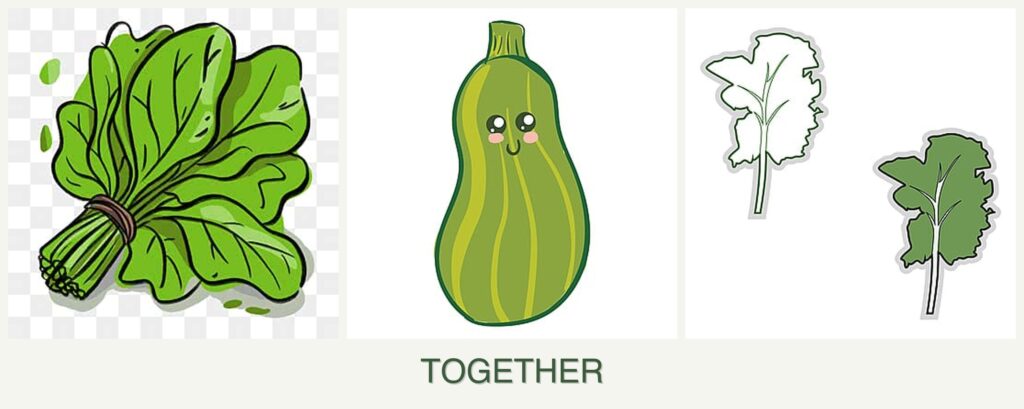 Companion planting spinach, zucchini, and kale offers several advantages: