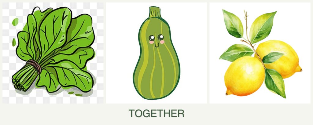 While spinach, zucchini, and lemons may not be ideal companions, there are general benefits to planting compatible plants together: