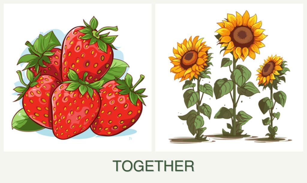 Nutrient Needs and Spacing: Sunflowers are heavy feeders, so ensure strawberries receive adequate nutrients. Proper spacing prevents competition for resources.