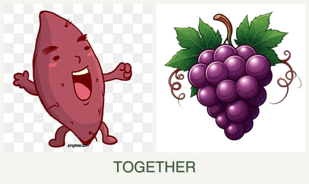 - Spacing: Sweet potatoes need expansive ground cover, while grapes need vertical space, making them spatially incompatible.