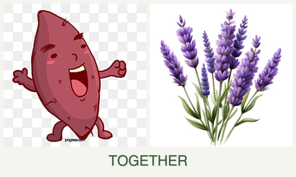 - Timing: Plant sweet potatoes after the last frost and lavender in spring or fall.