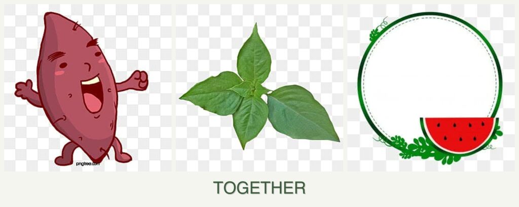Companion planting sweet potatoes, basil, and watermelons can offer several advantages: