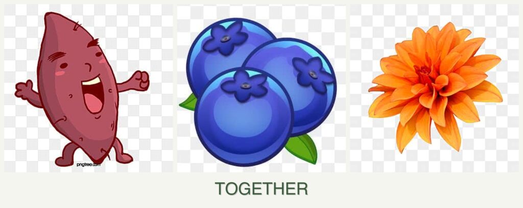 Can you plant sweet potatoes, blueberries and dahlias together?
