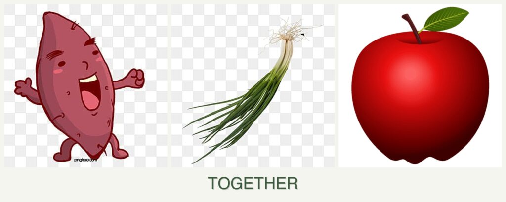 Planting sweet potatoes, chives, and apples together can offer several benefits: