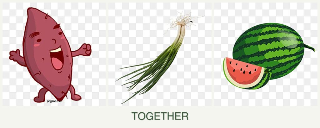 Planting sweet potatoes, chives, and melons together can offer several benefits: