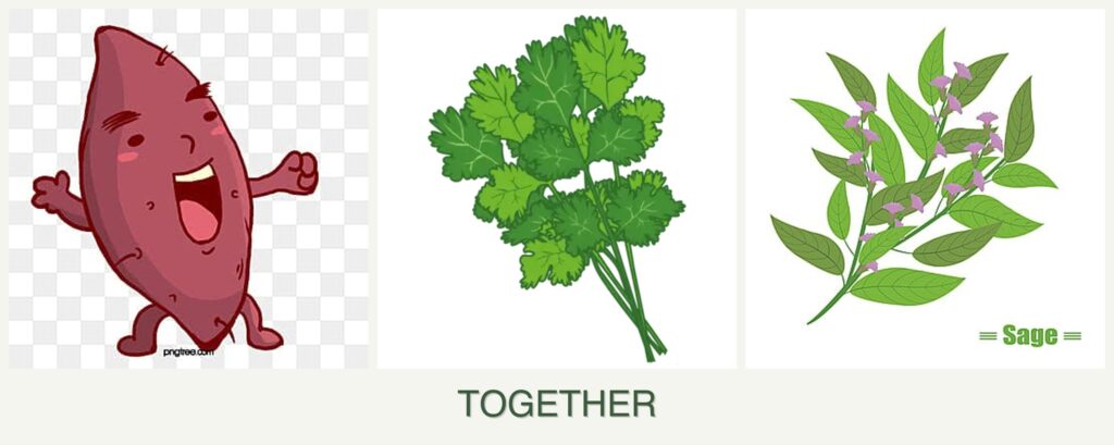 Planting sweet potatoes, cilantro, and sage together offers several benefits:
