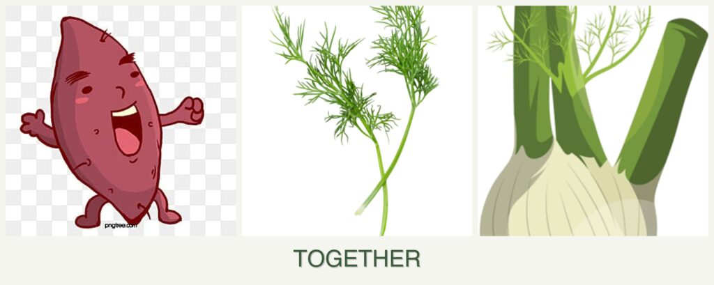 While planting sweet potatoes, dill, and fennel together is not ideal, there are benefits to pairing them with other companions: