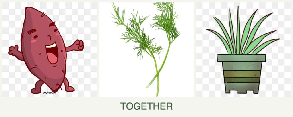 Planting sweet potatoes, dill, and lemongrass together offers several benefits: