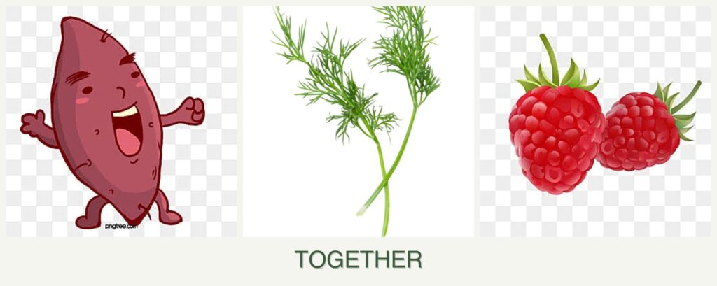 While planting sweet potatoes, dill, and raspberries together is not recommended, there are potential benefits if the conditions are managed carefully: