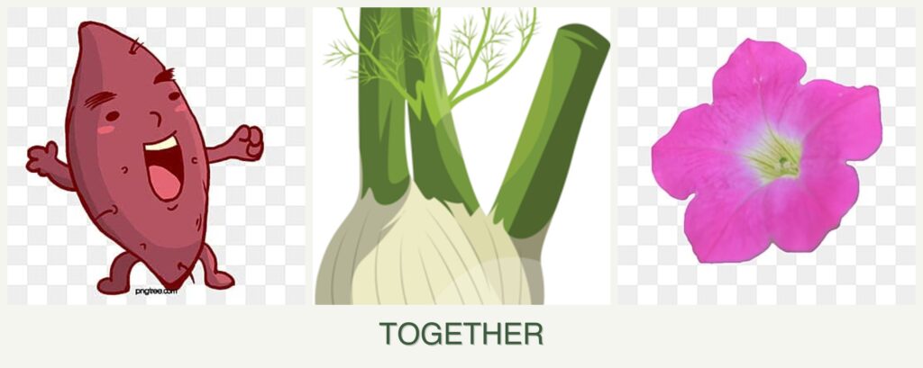 Although fennel is not a suitable companion, planting sweet potatoes and petunias together can offer some advantages: