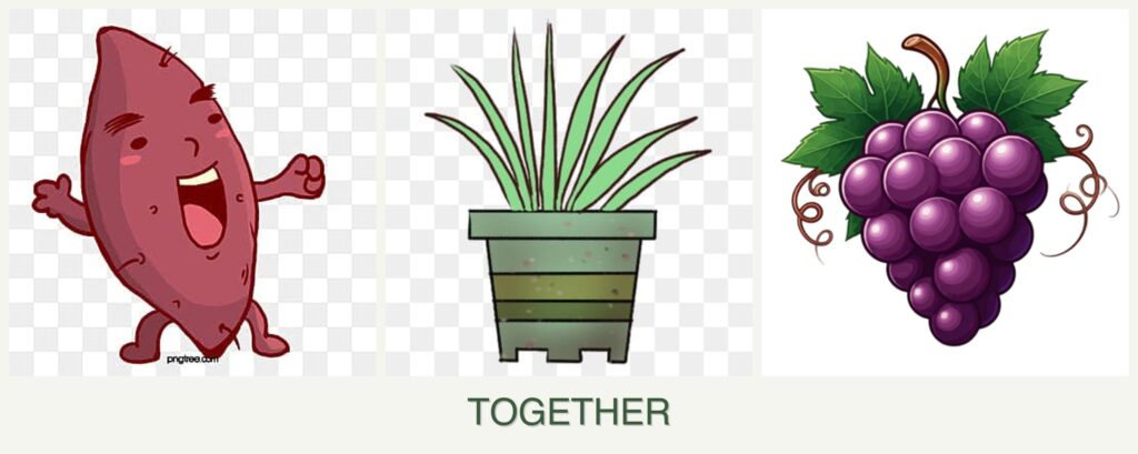 Can you plant sweet potatoes, lemongrass and grapes together?
