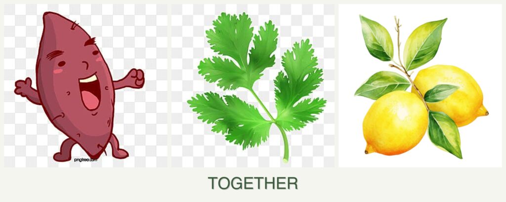 - Growth Requirements: Sweet potatoes and lemons both need full sun, while parsley can handle some shade, making it a flexible companion.