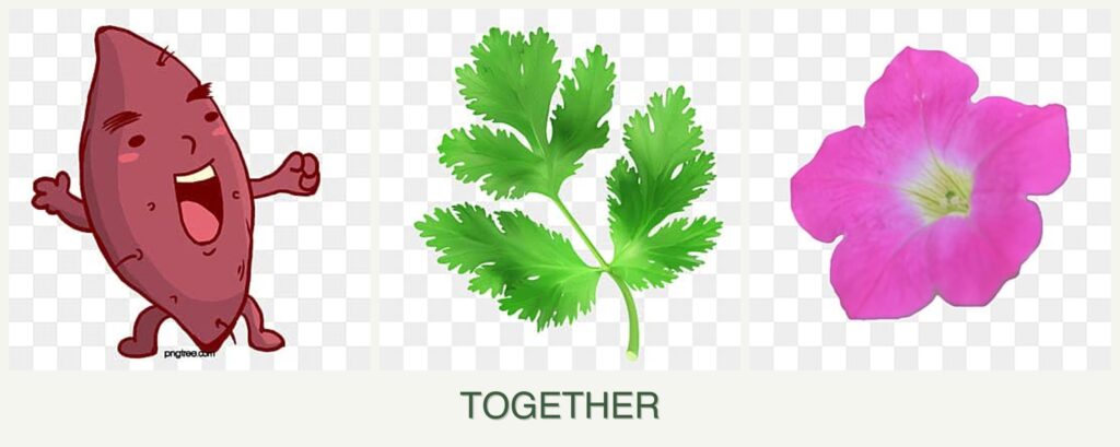 What should not be planted with sweet potatoes, parsley, and petunias?