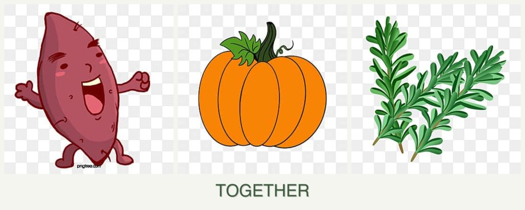 - Growth Requirements: Sweet potatoes and pumpkins need rich, well-drained soil, while rosemary thrives in sandy, well-drained soil.