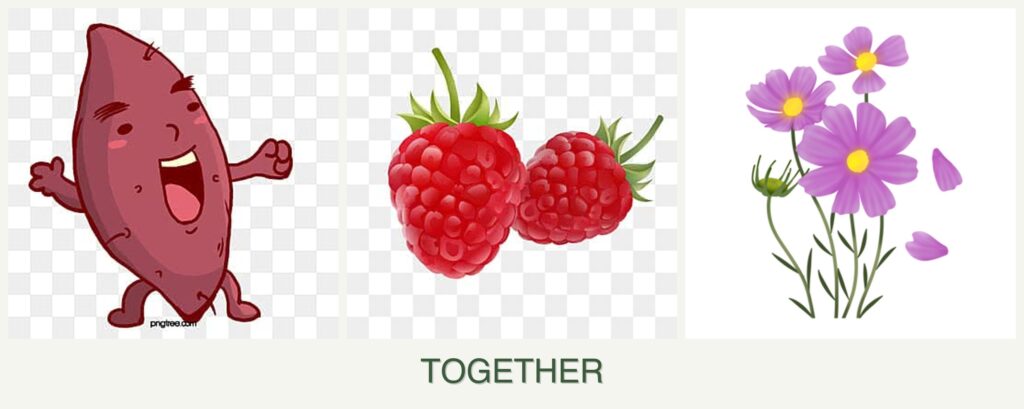 Can you plant sweet potatoes, raspberries and cosmos together?