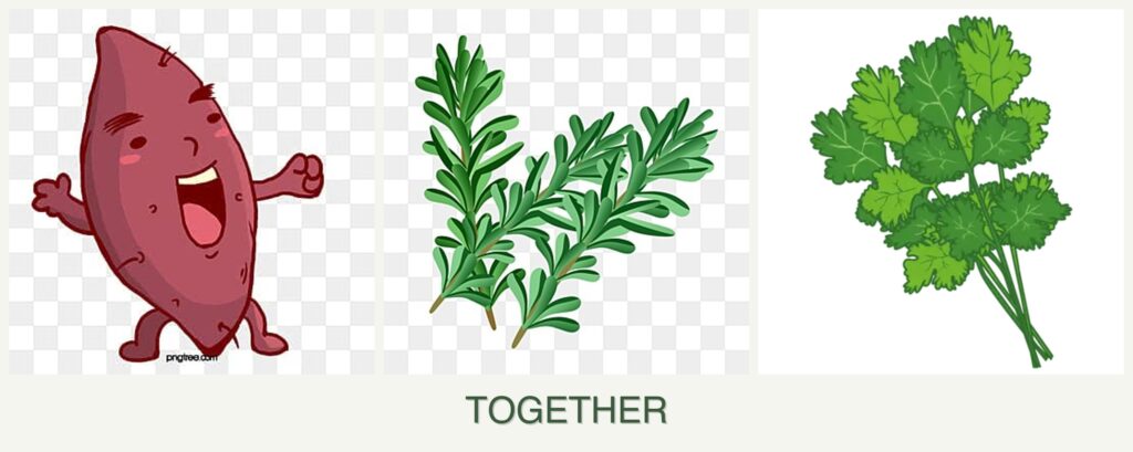 - Competition for Resources: Sweet potatoes require a lot of nutrients, which might compete with the needs of cilantro and rosemary.