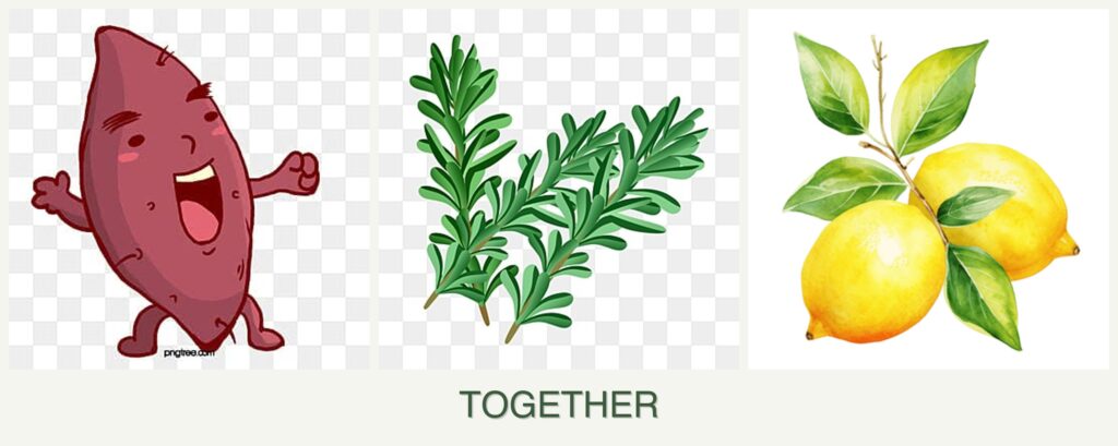 Can you plant sweet potatoes, rosemary and lemons together?