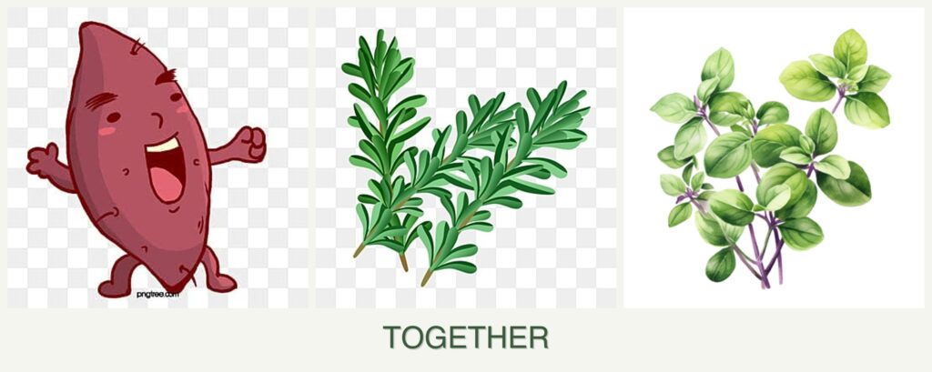 - Companion Plants: Basil and thyme also pair well with sweet potatoes, rosemary, and oregano.